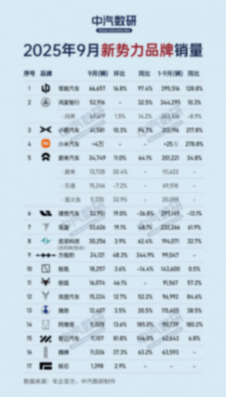 9月份,新势力品牌的角逐依然是车市一大看点。零跑以6.7万辆交付量继续领跑,同比翻番,连续7个月获得新势力品牌销量冠军;小鹏依靠MONA M03、P7系列持续放量,交付4.2万辆,同比暴涨95%;小米汽车交付量突破4万辆,快速跻身行业前列;蔚来交付3.5万辆,同比增长64%,首次超越理想。与之形成对比的是,理想当月月交付3.4万辆,相比去年4万-5万辆高点明显乏力,随着增程红利的消退,其在高端新能源汽车市场所具有的优势正在被削弱。
