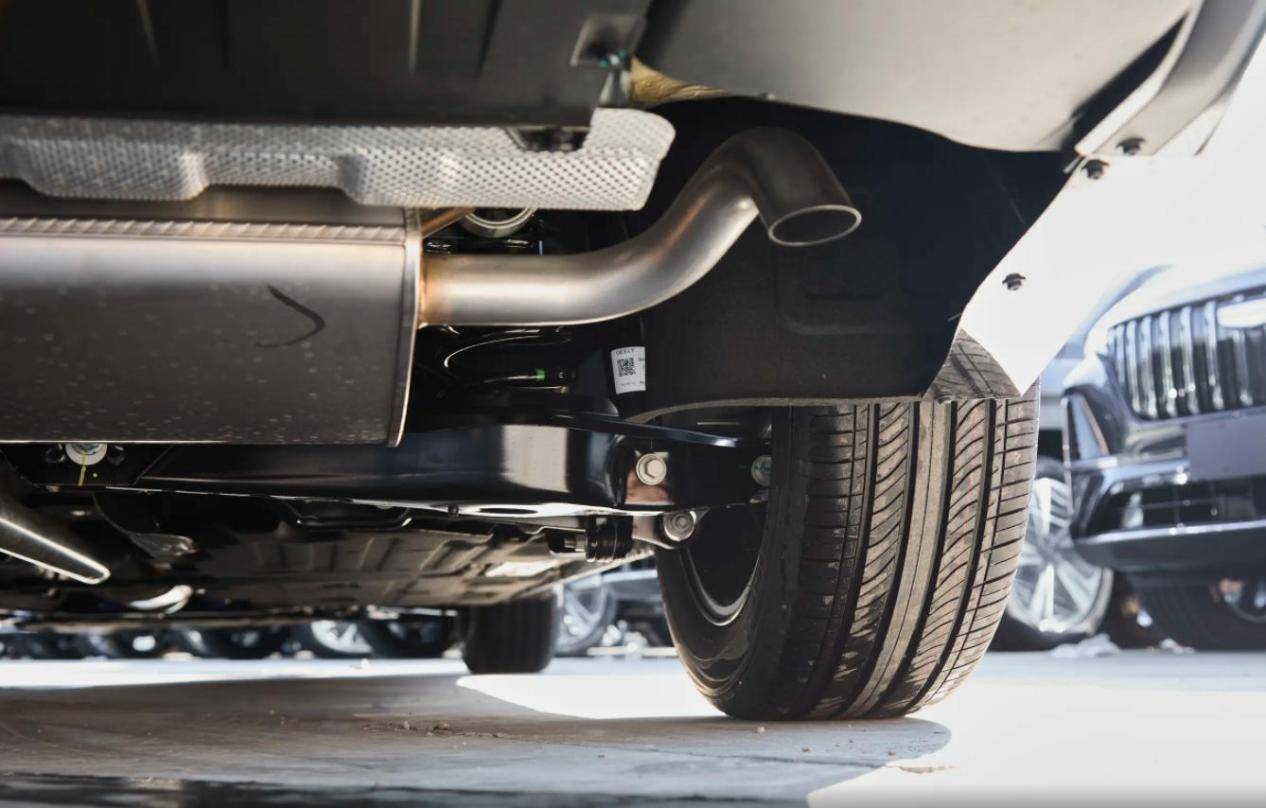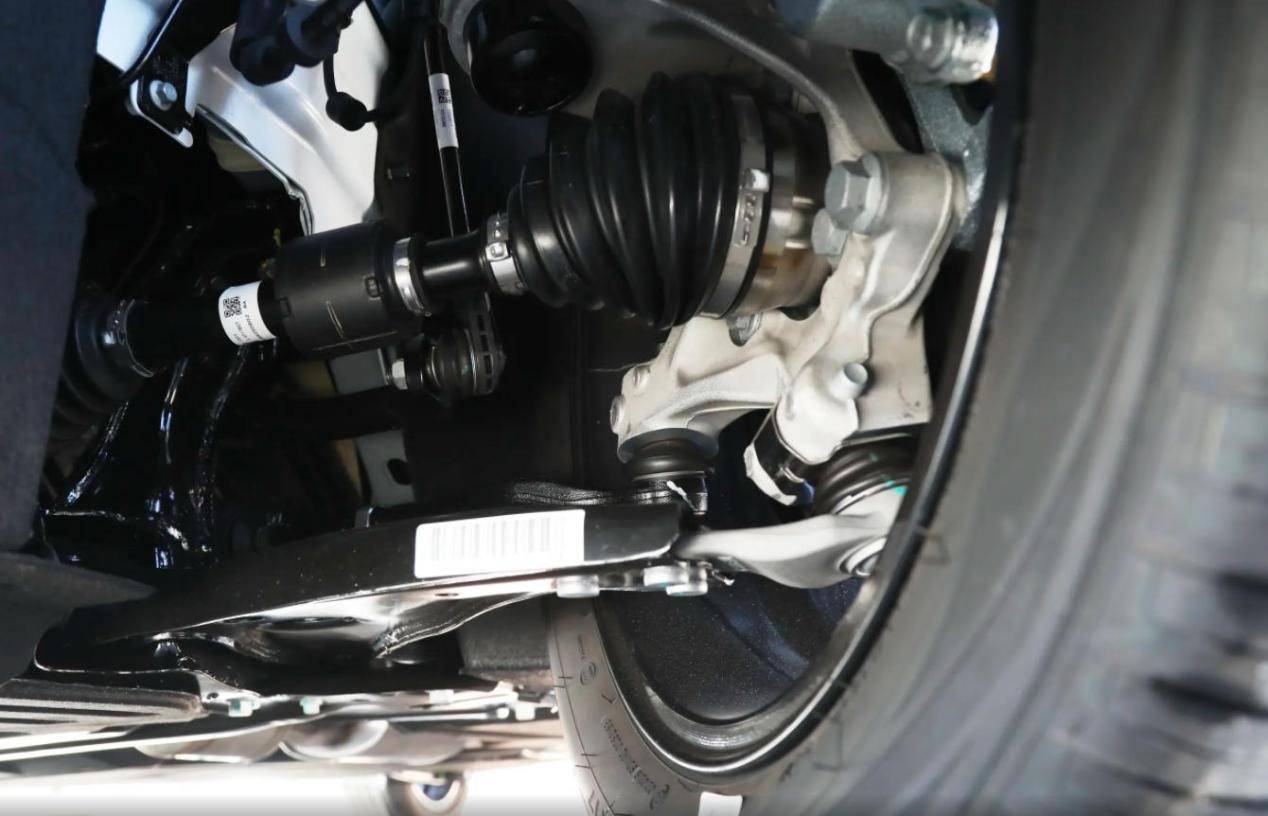 底盘方面,星瑞基于CMA架构打造,底盘没有明显的凸起,整个车底用纤维复合板覆盖,排气消声器采用椭圆形的截面,保证底盘的平整度和隔音能力,悬挂组合为前麦弗逊+后多连杆,虽然结构本身比较常见,但在材料选择上,吉利没有节省成本,前悬挂采用铝制的转向节来减轻车重,同时使用了双层冲压的钢制控制臂,这一点在同级并不多见,大多数车型为单薄的单层冲压钢板,副车架采用元宝梁的形式,而非全框式设计。