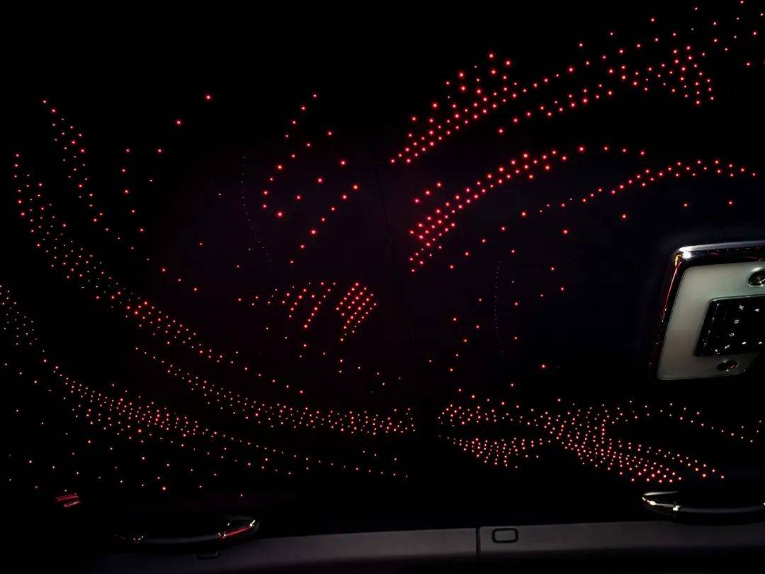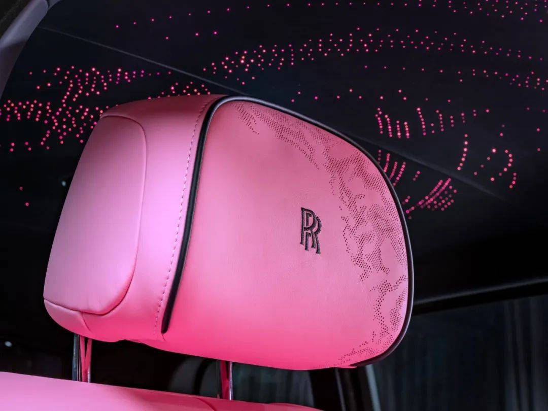 库里南Black Badge的前排座椅上有多达10.7万个打孔,每个孔的直径为0.8毫米或1.2毫米。深海军蓝的星空顶里有粉红色光纤灯,顶上也做了“Silken Spirit”动画,和车外呼应。