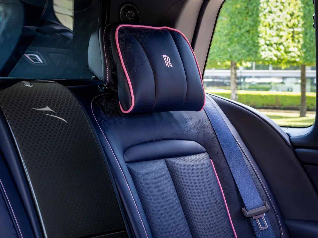 买家还将粉色主题延续到了车内,前排座椅采用了浅粉色(blush pink)皮革包裹,后排则是海军蓝皮革搭配浅粉色(blush pink)滚边和缝线。