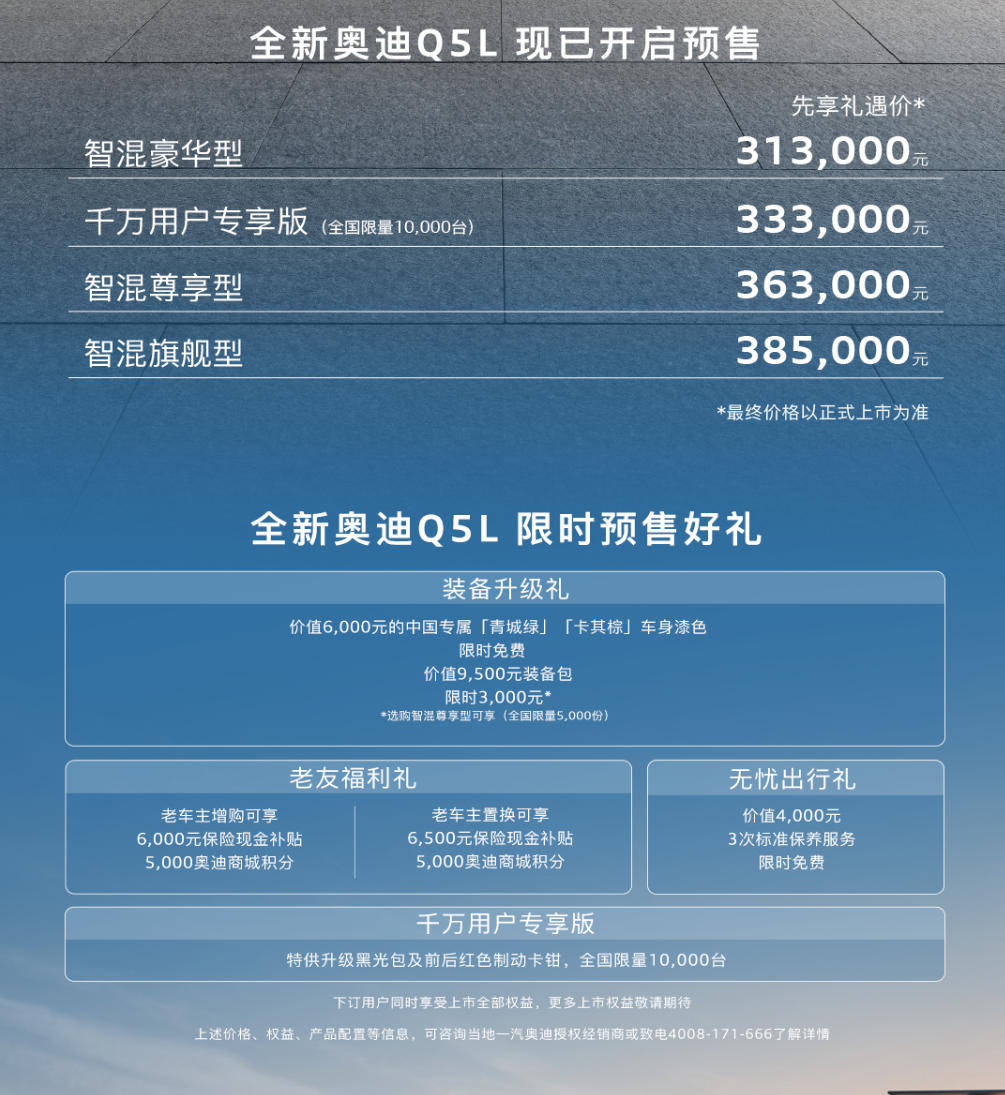 日前,网通社获悉,全新奥迪Q5L将于1月15日上市,新车在此前已经开启预售,预售价31.3-38.5万元。全新奥迪Q5L基于全新的PPC燃油车平台打造,搭载2.0T发动机,配备华为乾崑辅助驾驶系统。