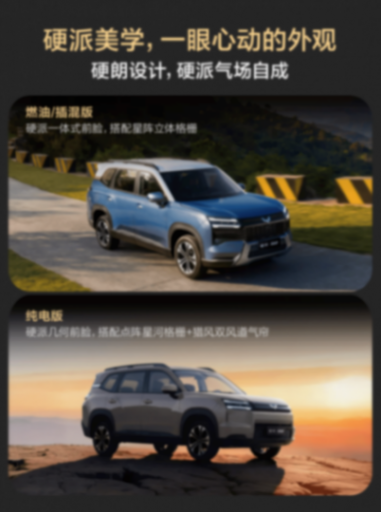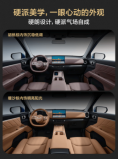 车内主打简约设计风格,提供“胡桃棕”与“暖沙棕”双色内饰方案,并且使用了大量的软包和皮质包覆,这种豪华质感确实是一般10万级SUV给不到的。新车提供了三种动力组合,所以换挡方式也是有所不同的,燃油版保留了传统的挡把设计,新能源版本则是使用了怀挡造型。中控台集成12.8英寸悬浮屏与Ling OS灵犀系统,支持4G网络、车联网、手机APP远程控制、车载蓝牙、HUAWEI HiCar/Carlink手机互联、OTA升等功能,操作流畅度足以媲美新势力品牌。此外,全车配备25处人性化储物空间,从手机无线充电到中央扶手箱冷暖箱,细节设计直击家庭用户痛点。