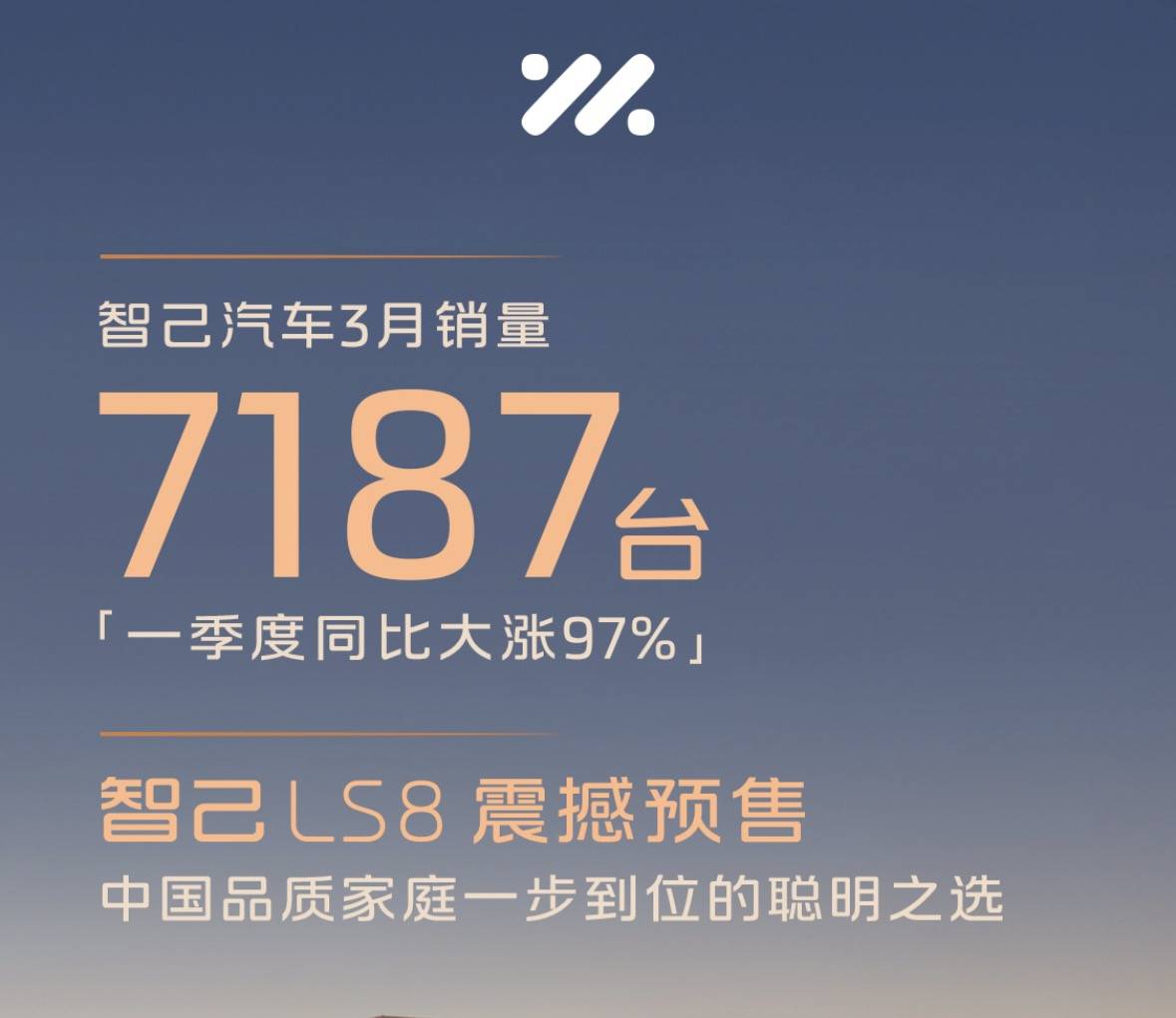 3月智己汽车交付量为7187辆,一季度同比增长97%。从交付量来看,虽然智己汽车还未突破万辆及格线,但智己汽车已经看见了“曙光”。3月份,智己汽车已经开启了智己LS8的预售,凭借25.98万元的预售起步价以及多项越级配置的全系标配,新车发布45分钟小订就已经突破了1万台。