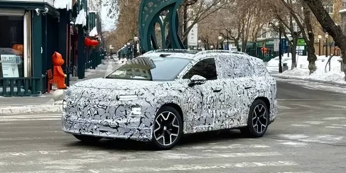 而外观这块,大众这次选择不再圆润中庸,虽然还裹成厚厚的粽子,但也可以看到新车前脸采用了封闭式的设计,配备了分体式大灯组,上方LED预计将会成为贯穿式的设计,下方的远近光灯组使用了正方形造型,车顶上方还配备了激光雷达,外后视镜上还镶嵌有智驾小蓝灯模组,此外,车辆还会采用半隐藏式的车门把手、贯穿式尾灯等。侧身设计似乎跟揽境相似,强调空间实用性。五座中型SUV,侧面比例扎实,这对家用党来说是加分项。