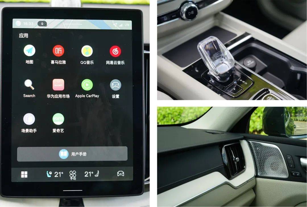 中间这块11.2英寸悬浮式中控屏 , 虽然相比现款的内嵌式设计会显得有点突兀, 但体验感明显好多了。新的安卓系统UI界面清爽了不少,4G车联网的加持下,高德地图、喜马拉雅、QQ音乐、哔哩哔哩这些常用APP都有配备,手机则能安心地放在无线充电面板上充电了。