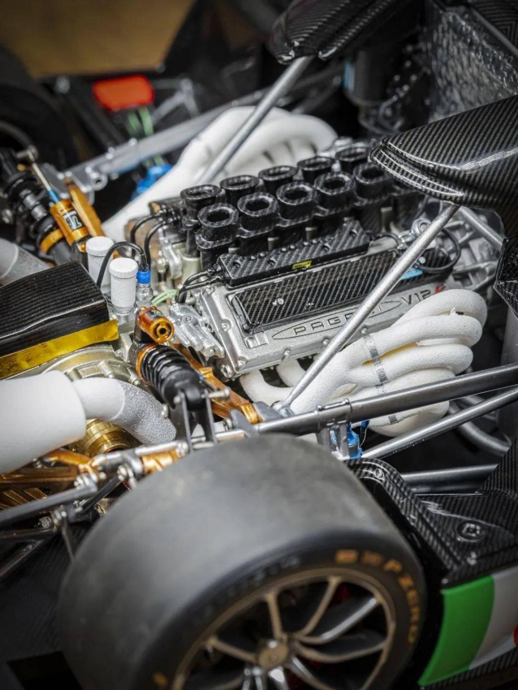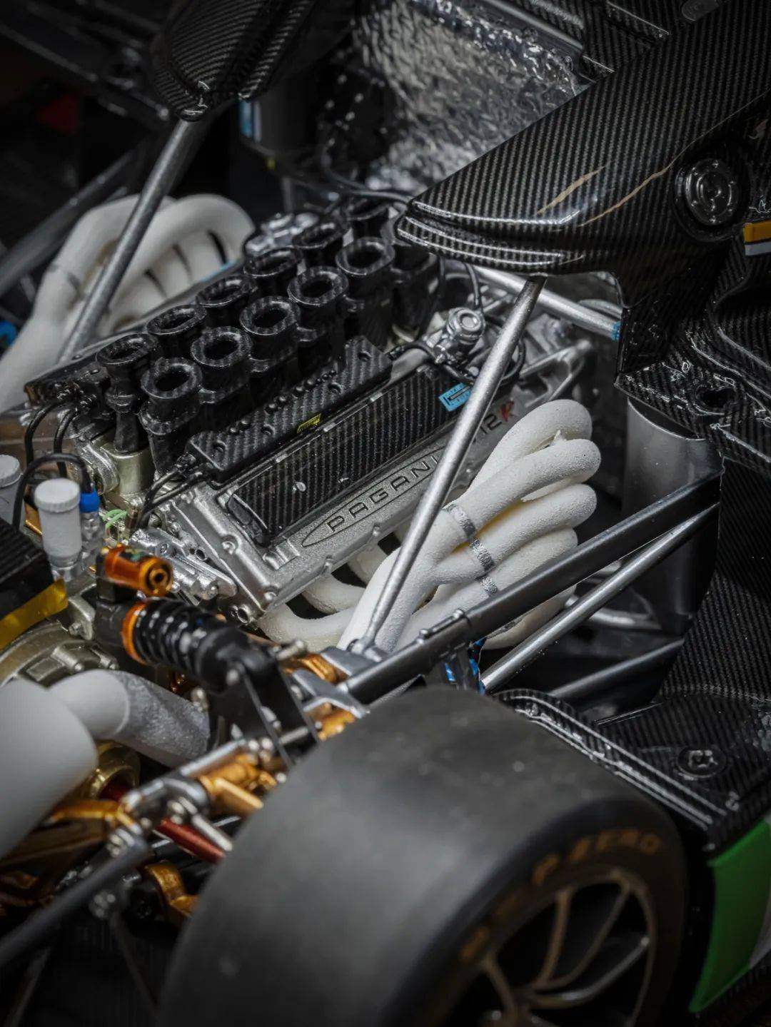 帕加尼Huayra R搭载与梅赛德斯-AMG子公司HWA AG联合开发的6.0升V12自然吸气发动机(代号Pagani V12-R),重量仅198公斤,为同排量最轻发动机之一。该发动机输出功率850马力(625kW),峰值扭矩750牛·米,红线转速高达9,000转/分钟,采用高精度直喷系统(200bar压力)提升热效率。传动系统为6速序列式变速箱,由Xtrac合作开发,换挡速度达毫秒级,传动效率超95%,搭配赛车离合器和后驱限滑差速器。